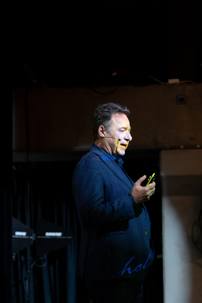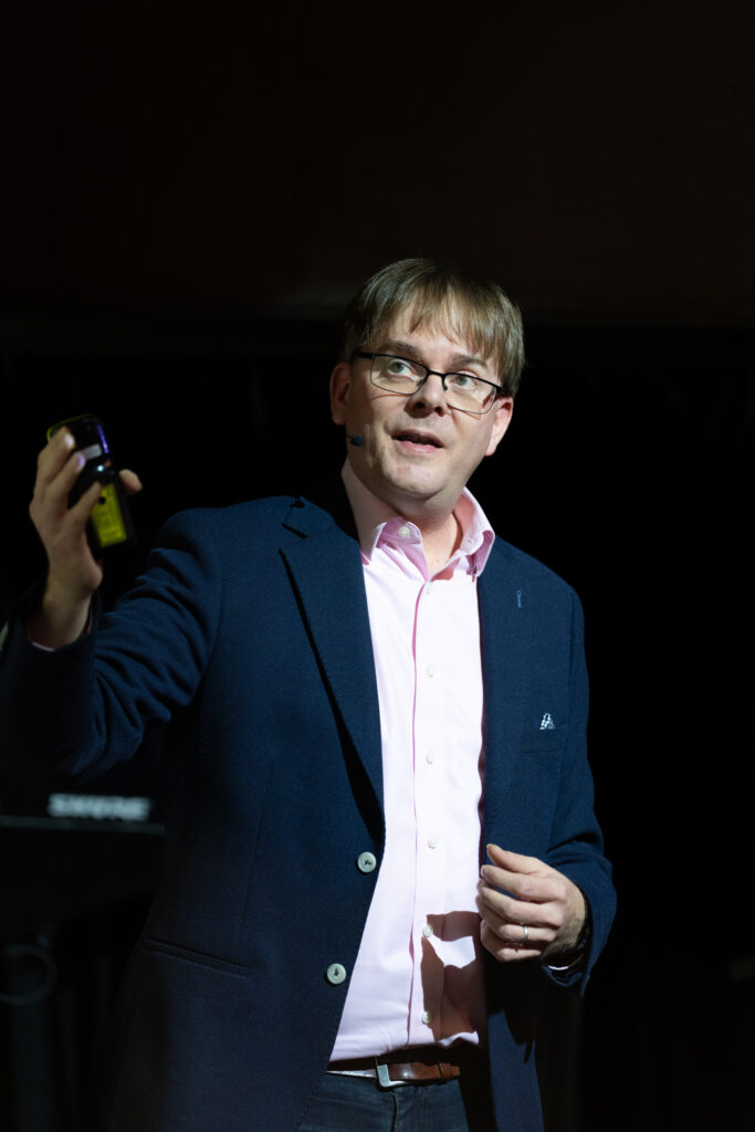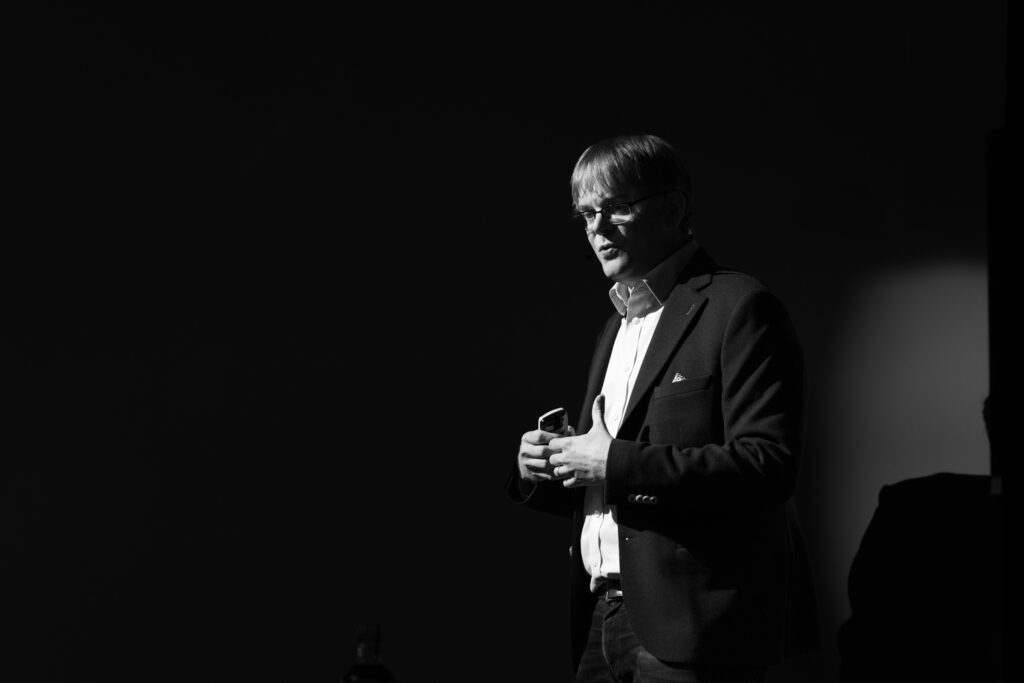 Etter nok en pause med mingling og utsikt over byen, avsluttet Lars Istre fra Vipps MobilePay med et ærlig og underholdende foredrag om memes, fuck-ups og forretningsforståelse, før dagens siste og mest etterlengtede gjest tok scenen: